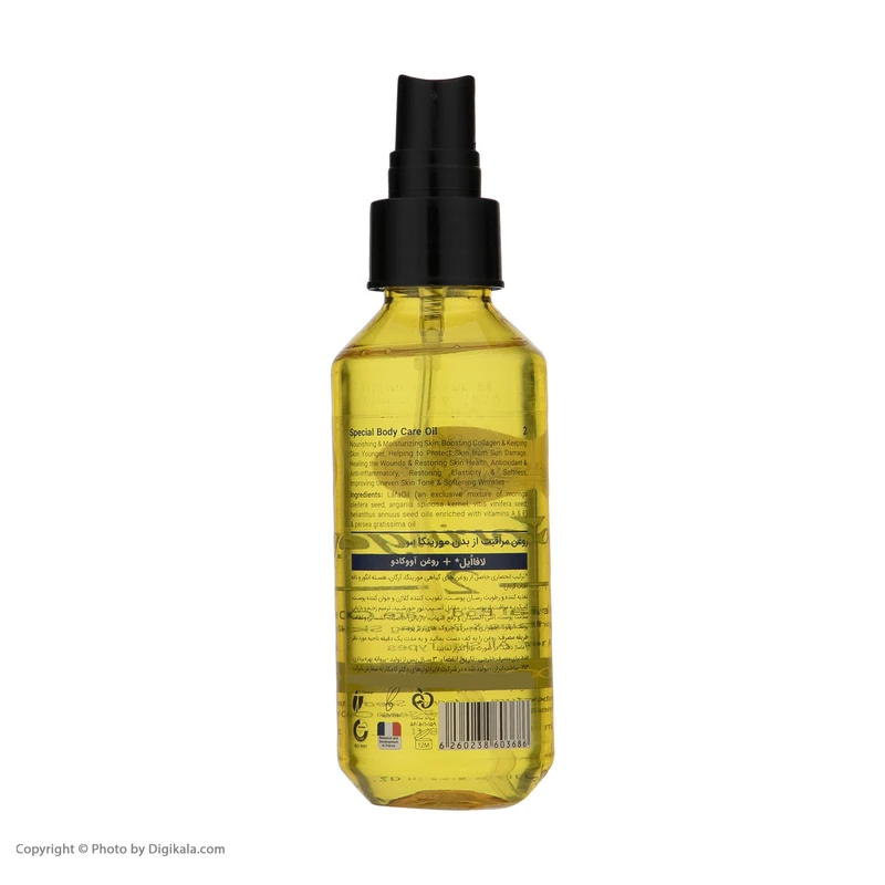 LáfaOil (لافااُیل: ترکیبی انحصاری شامل روغنهای گیاهی مورینگا، آرگان، هسته انگور و دانه آفتابگردان و ویتامین A و E) + روغن آووکادو این محصول، عاری از هر گونه ماده نگهدارنده است.